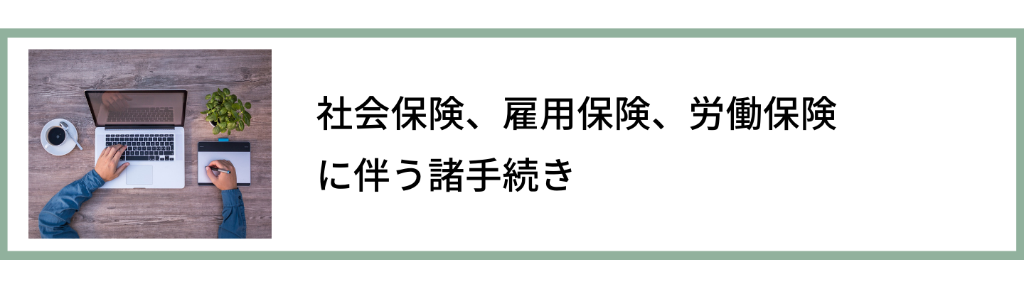 会社で従業員を雇用すると発生する社会保険や雇用保険、労働保険の手続きを